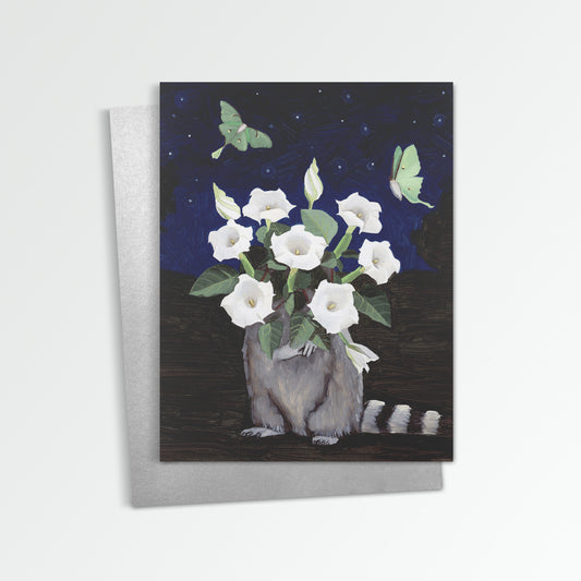 Raccoon w/ Moonflower Notecard (Blank Inside)