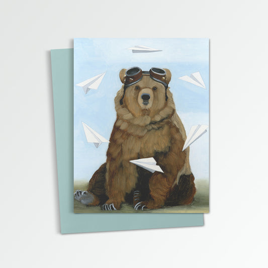 Bear w/ Paper Airplanes Notecard (Blank Inside)