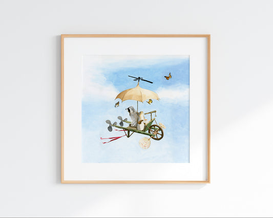 Flying Machine w/ Wheelbarrow - 10x10 Art Print