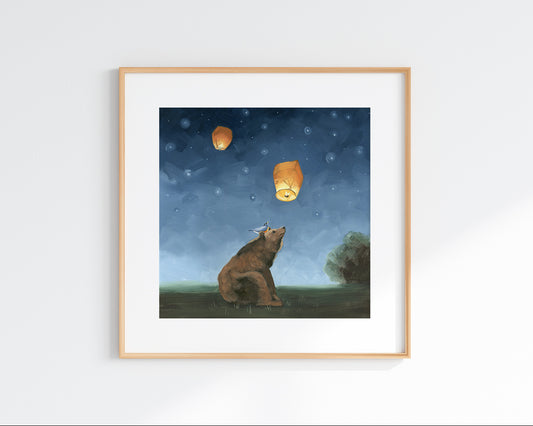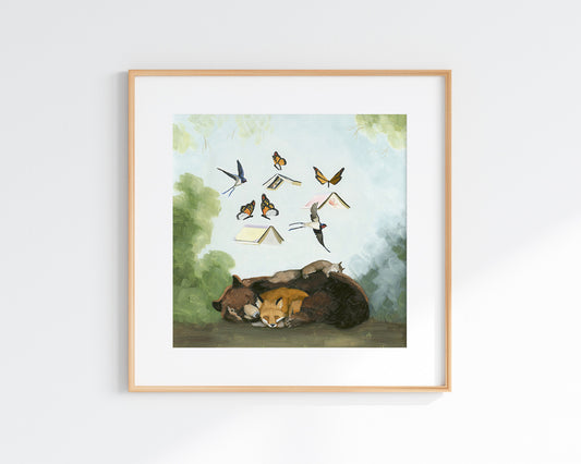Bear, Fox, Squirrel w/ Books Art Print (8x8)