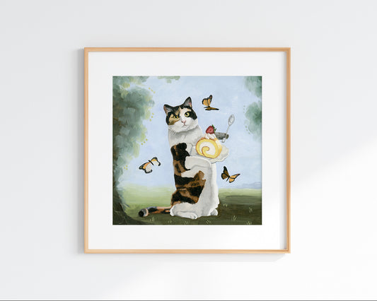 Calico Cat w/ Swiss Roll Art Print (8x8)