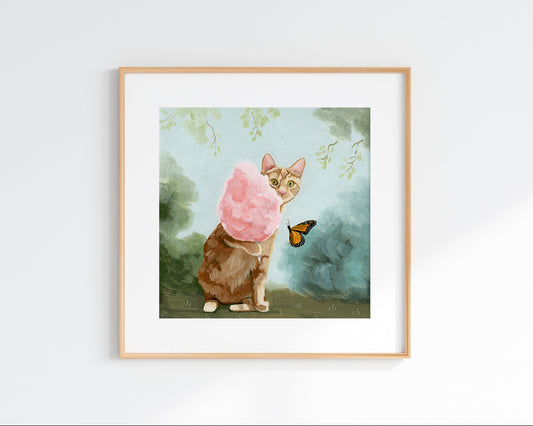 Ginger Cat w/ Cotton Candy Art Print (8x8)