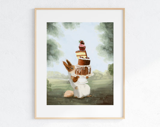 Squirrel w/ Dessert Stack Art Print (8x10)