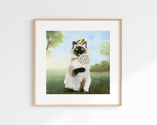 Siamese Cat w/ Lollipop Art Print (8x8)