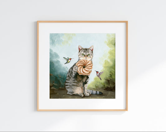 Tabby Cat w/ French Cruller Art Print (8x8)