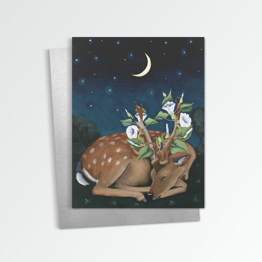 Deer w/ Moonflowers Notecard (Blank Inside)