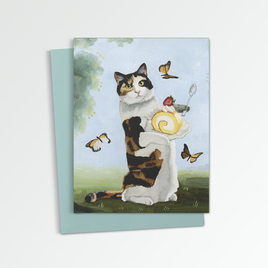 Calico Cat w/ Swiss Roll Notecard (Blank Inside)