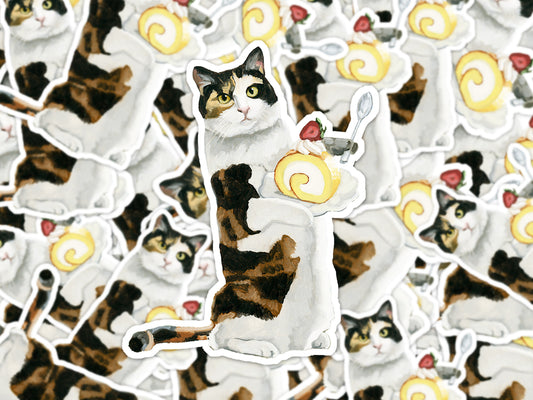 Calico Cat w/ Swiss Roll Vinyl Sticker