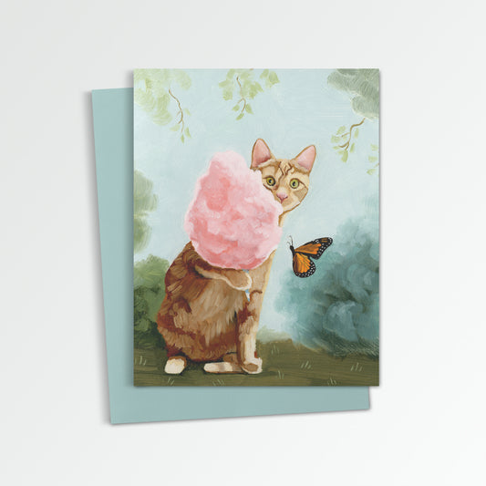Ginger Cat w/ Cotton Candy Notecard (Blank Inside)