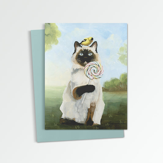 Siamese Cat w/ Lollipop Notecard (Blank Inside)