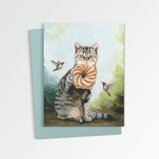 Tabby Cat w/ French Cruller Notecard (Blank Inside)