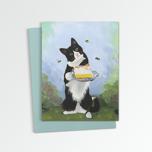 Tuxedo Cat w/ Lemon Meringue Pie Notecard (Blank Inside)