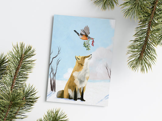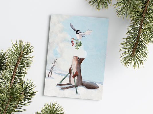 Squirrel Skiing & Mistletoe Notecard (Blank Inside)