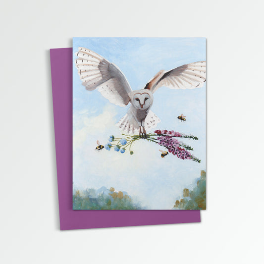 Owl w/ Foxglove & Pincushion Notecard (Blank Inside)