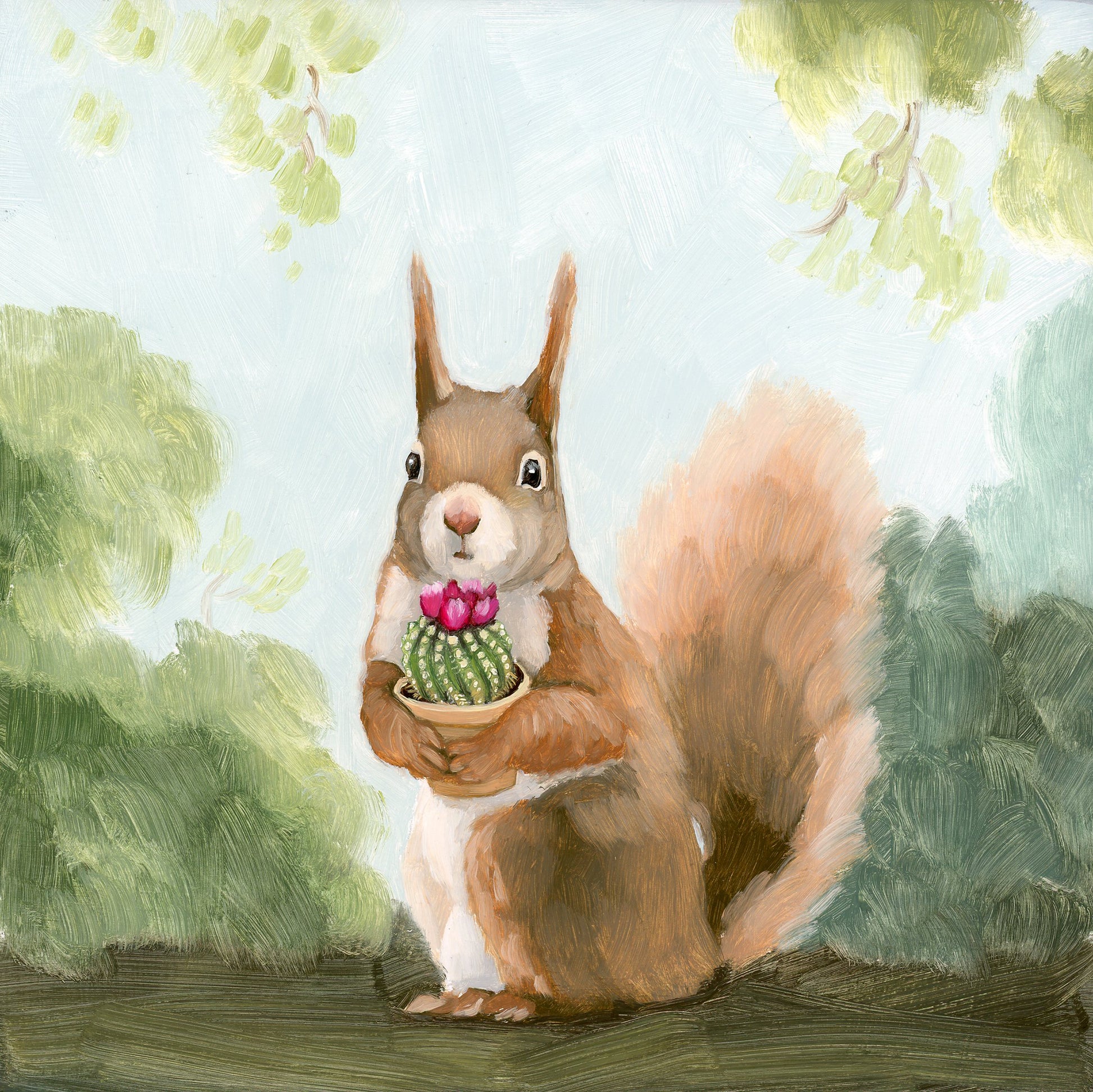 Squirrel w/ Cactus - 8x8 Original Oil Painting