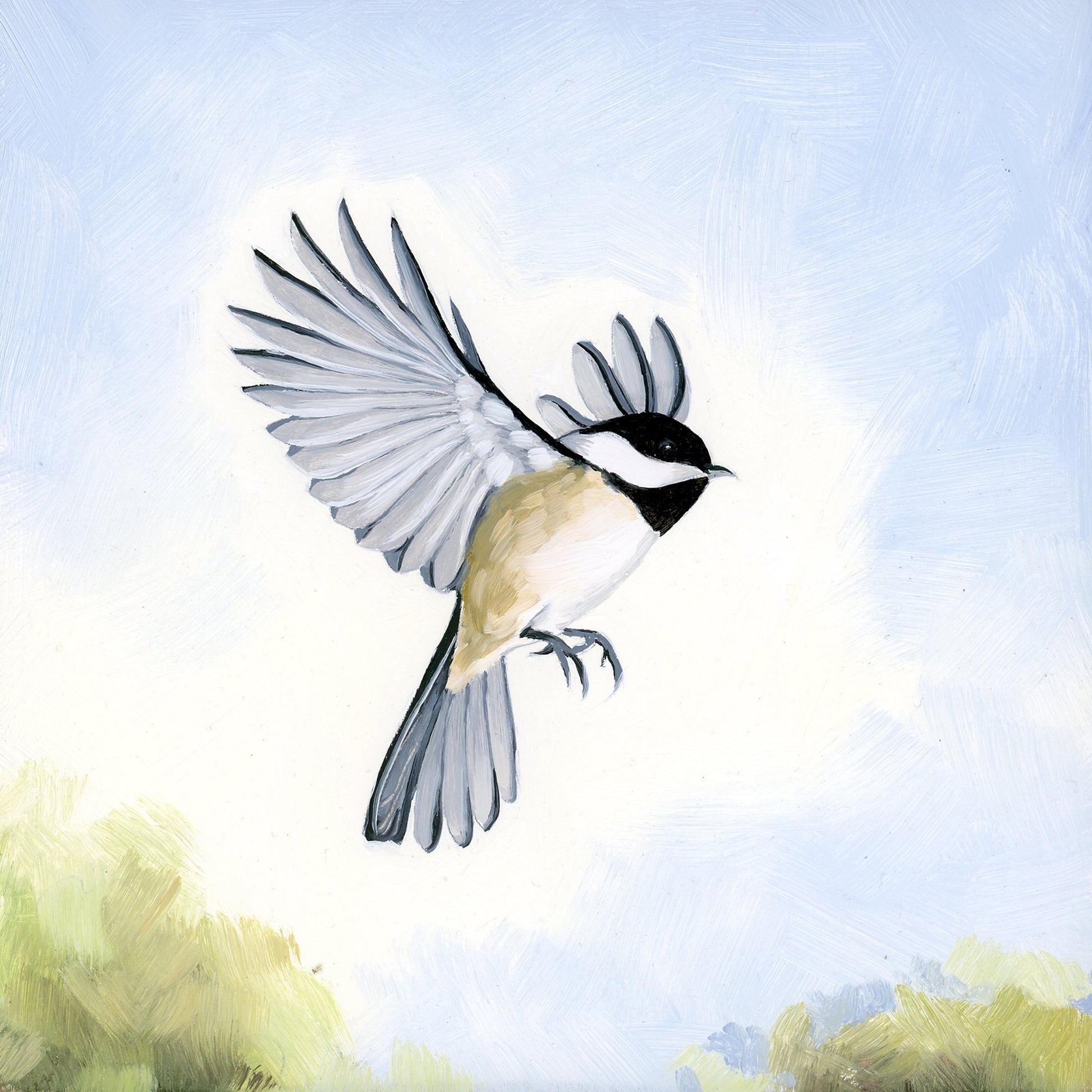 Signed 'Kim Ferreira' w/ Title 'Joie de Vivre: Black-capped Chickadee' on the back w/ Permanent Marker