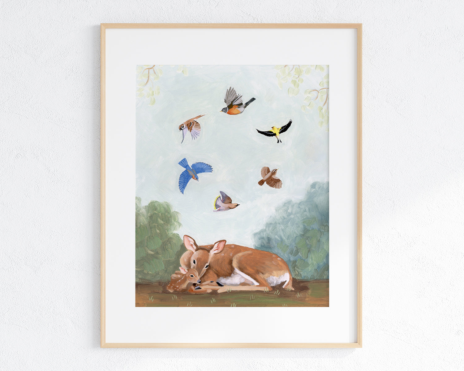 Deer and Songbirds - Art Print
