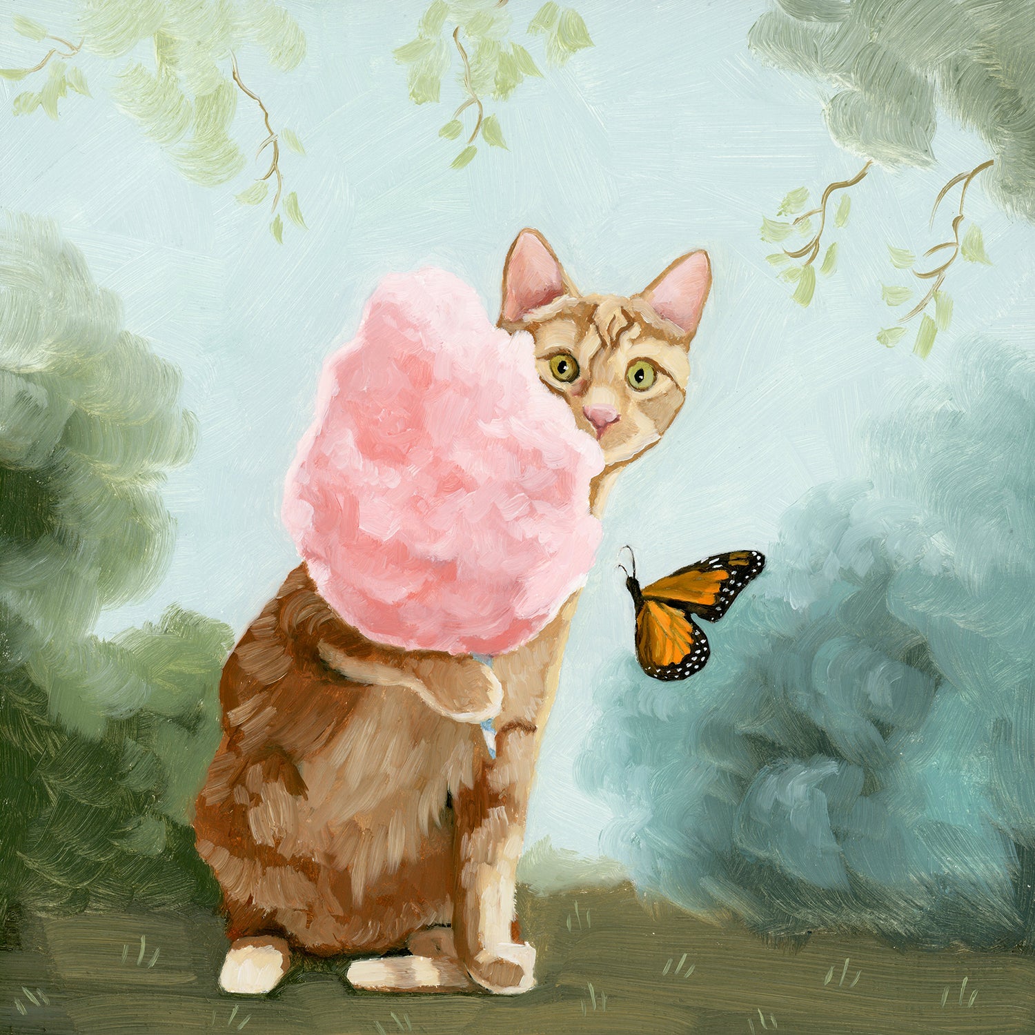 Ginger Cat w/ Cotton Candy Art Print (8x8)