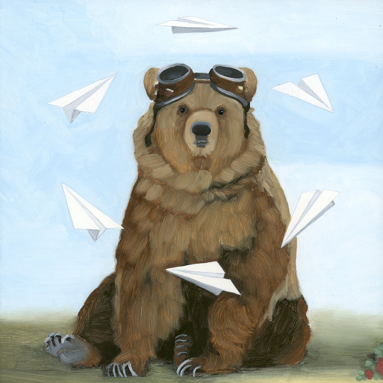 Bear w/ Paper Airplanes Art Print (8x8)