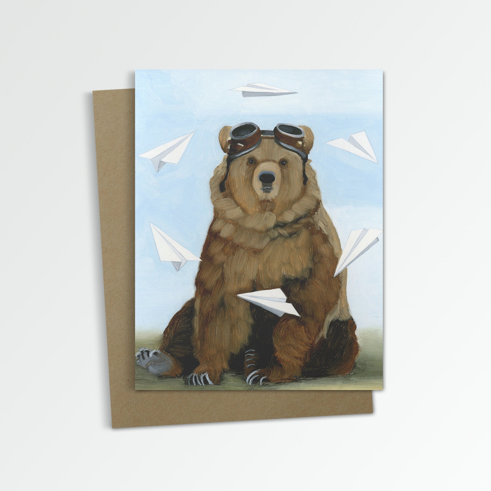 Bear w/ Paper Airplanes Notecard (Blank Inside)