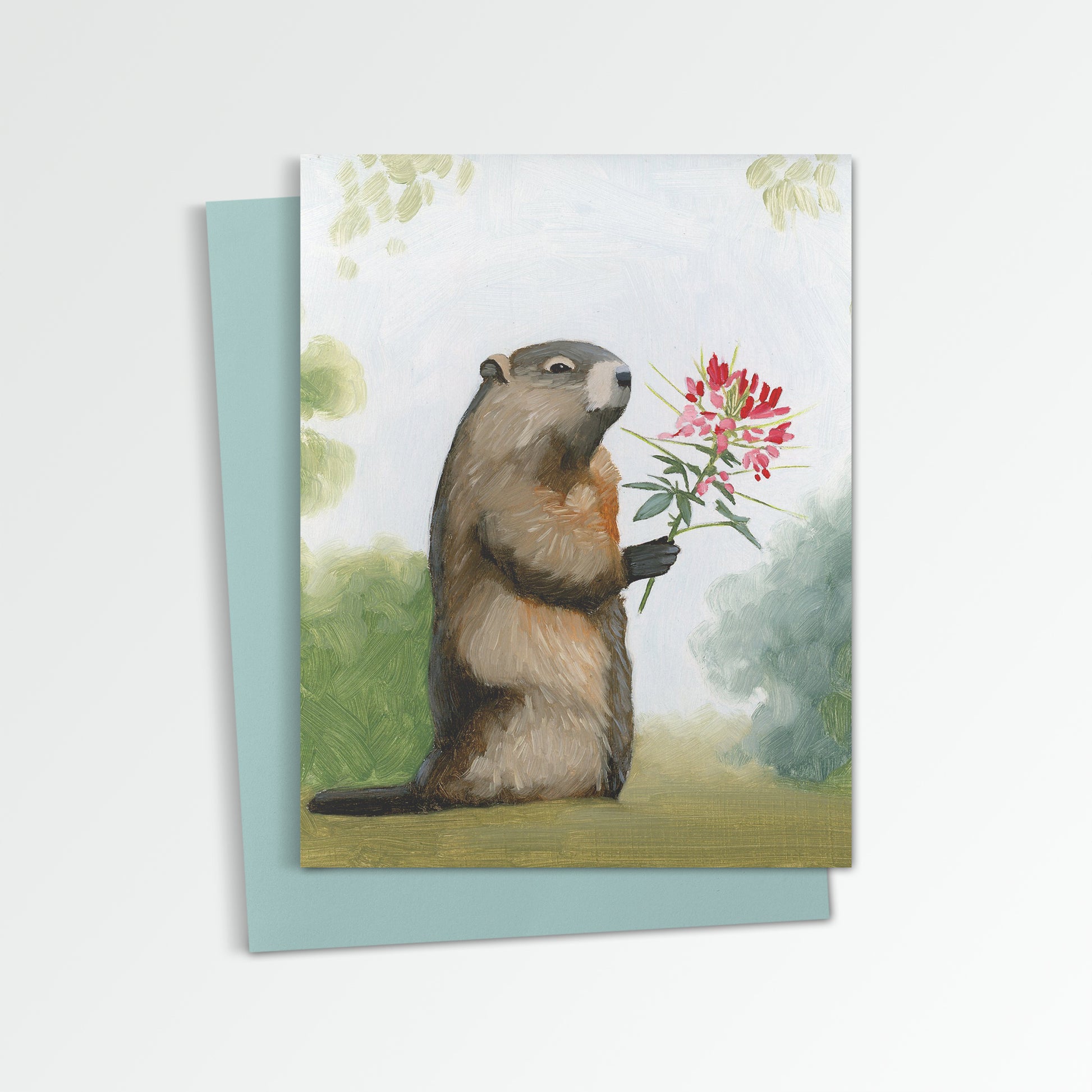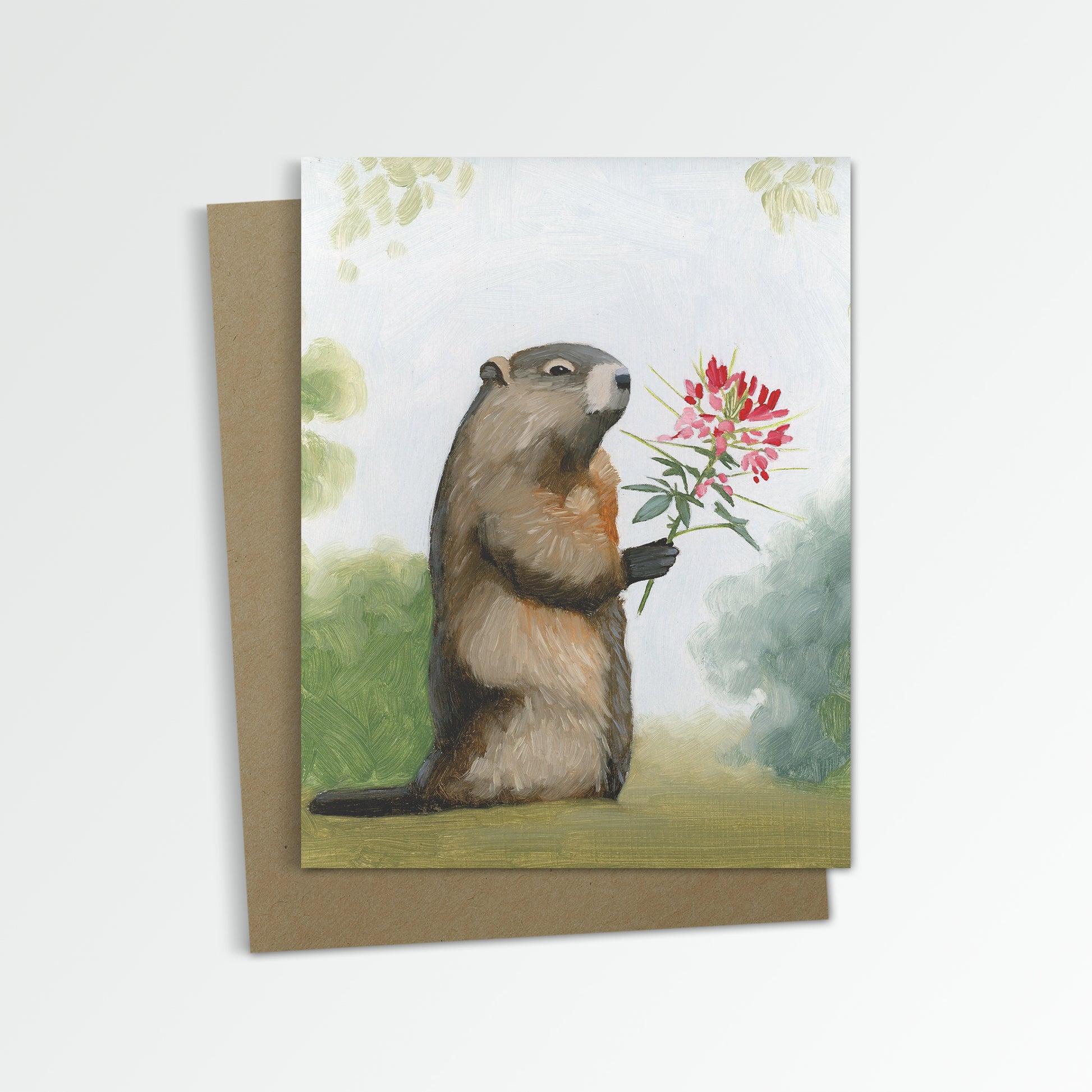 Groundhog w/ Cleome Notecard (Blank Inside)