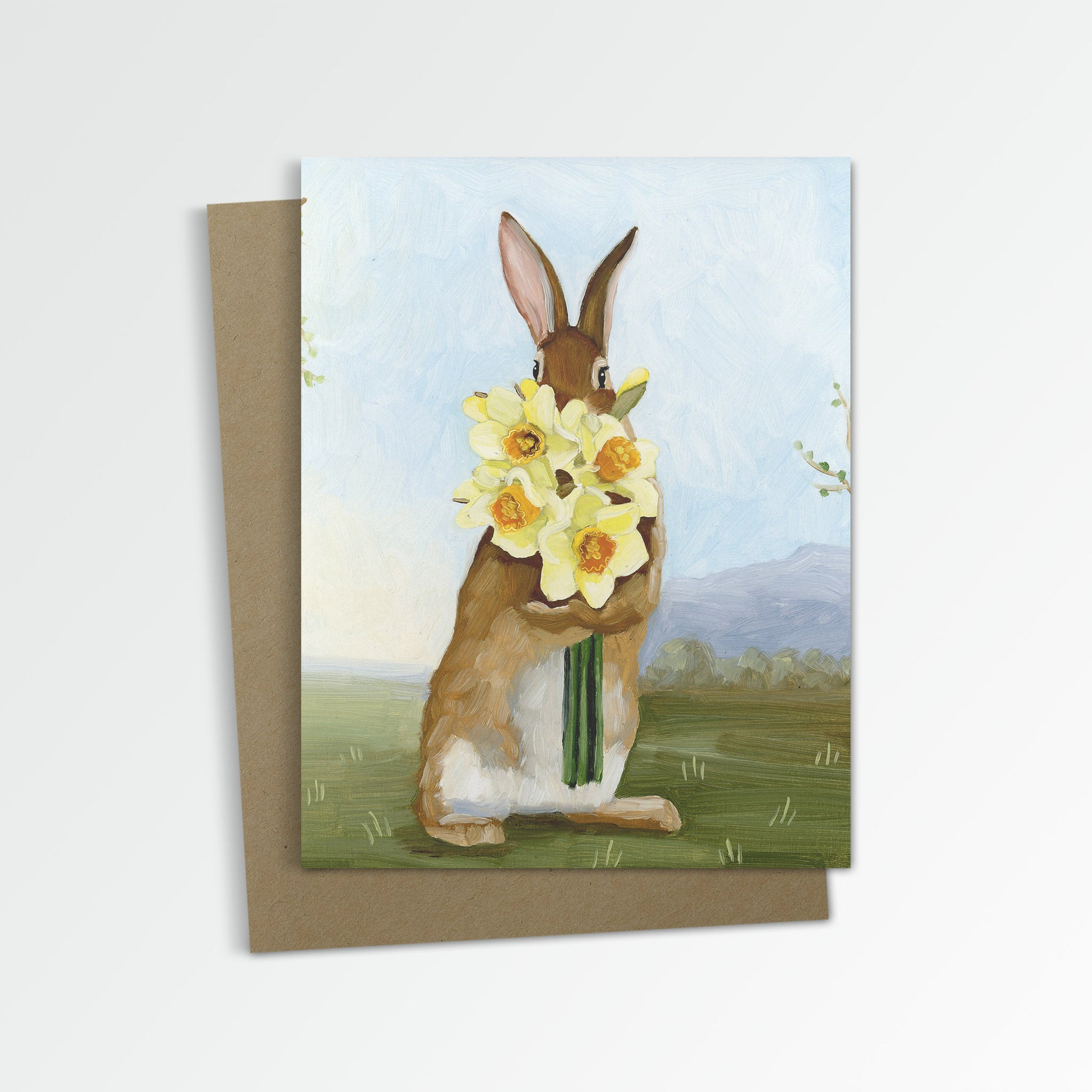 Rabbit w/ Daffodils Notecard (Blank Inside)