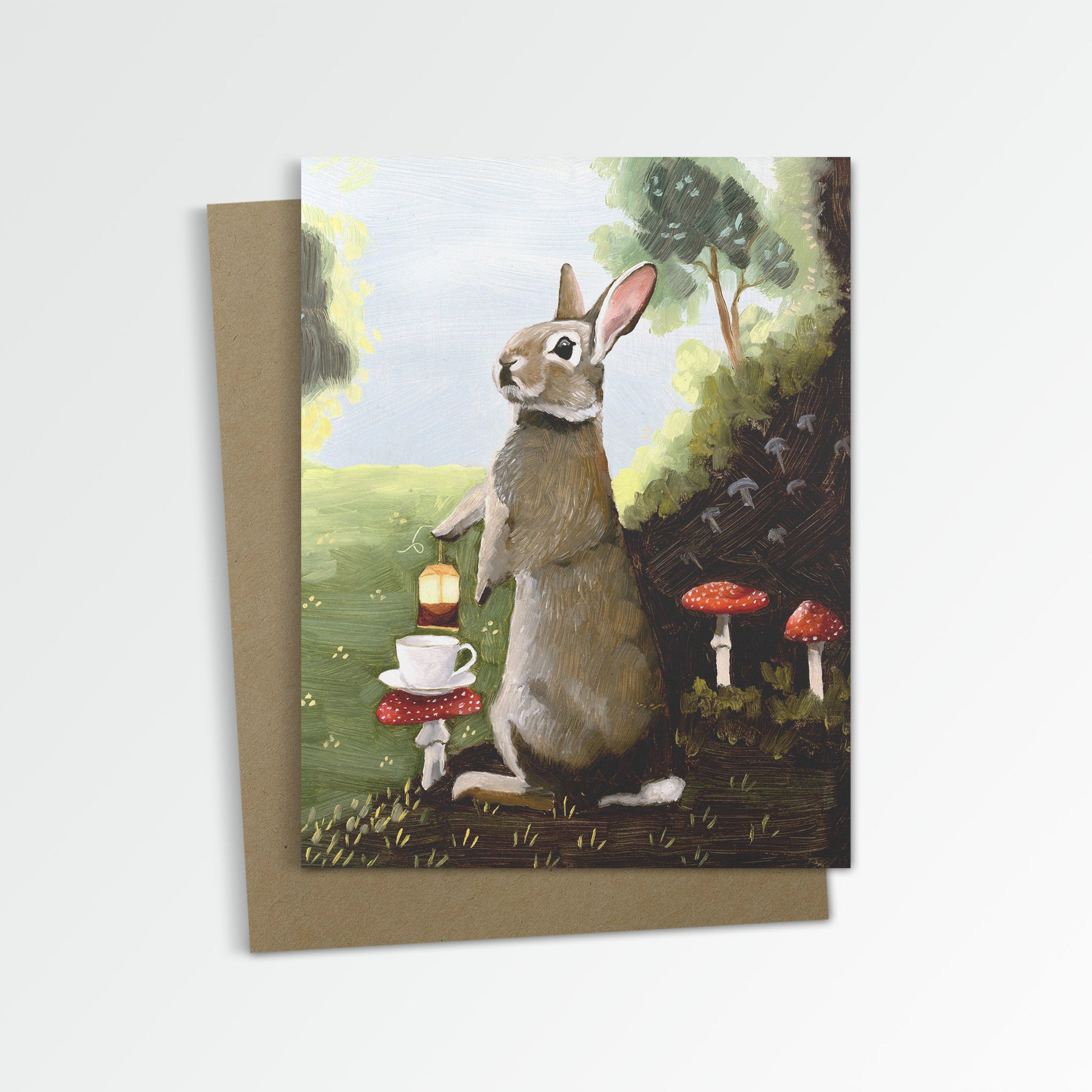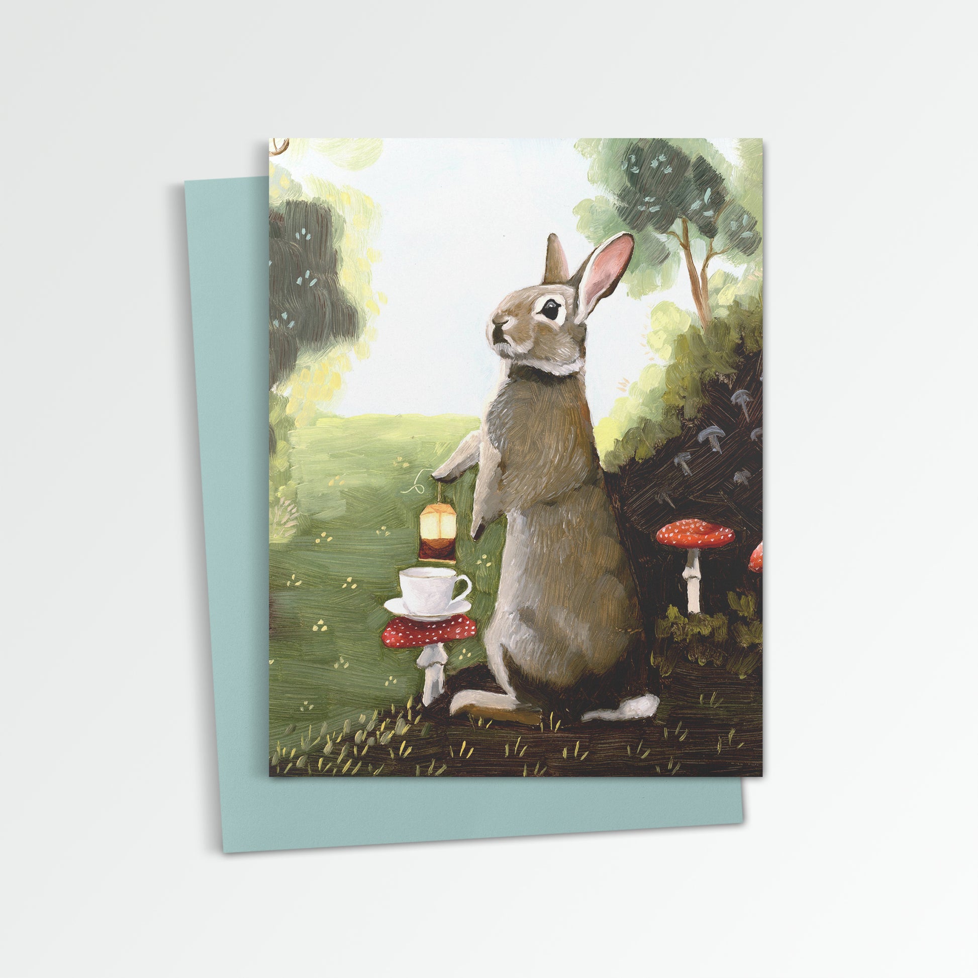 Rabbit w/ Toadstools and Tea Notecard (Blank Inside)