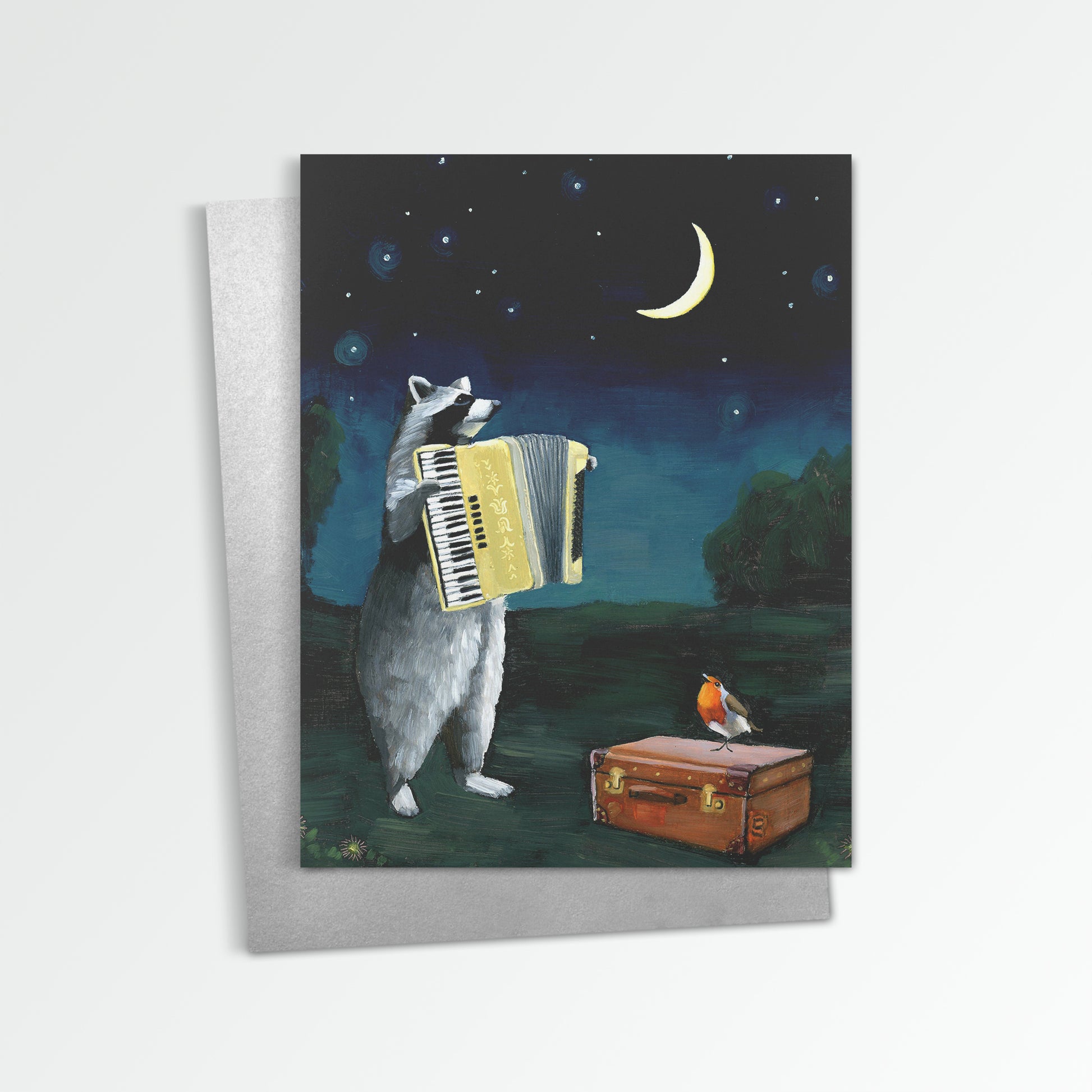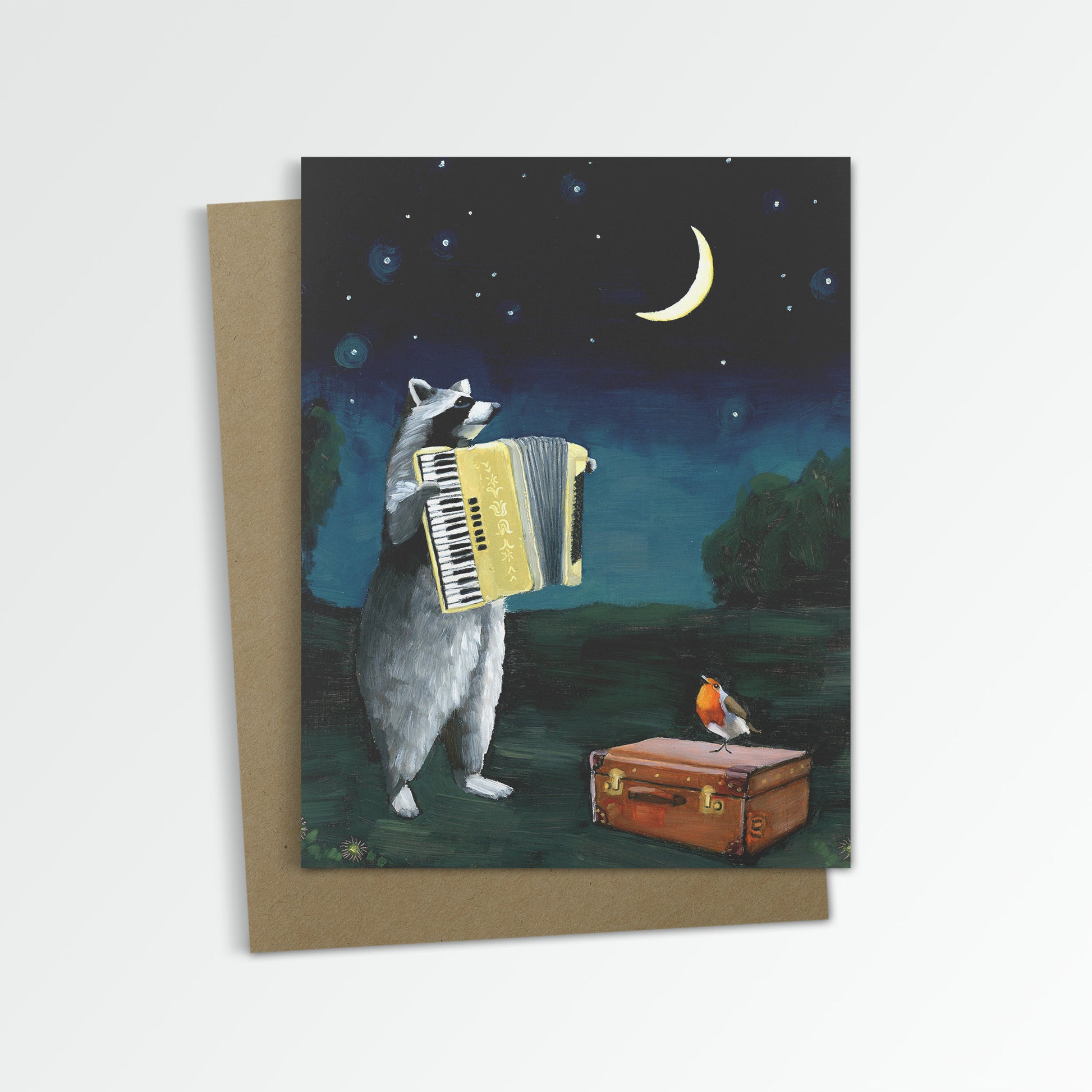 Raccoon w/ Accordion Notecard (Blank Inside)