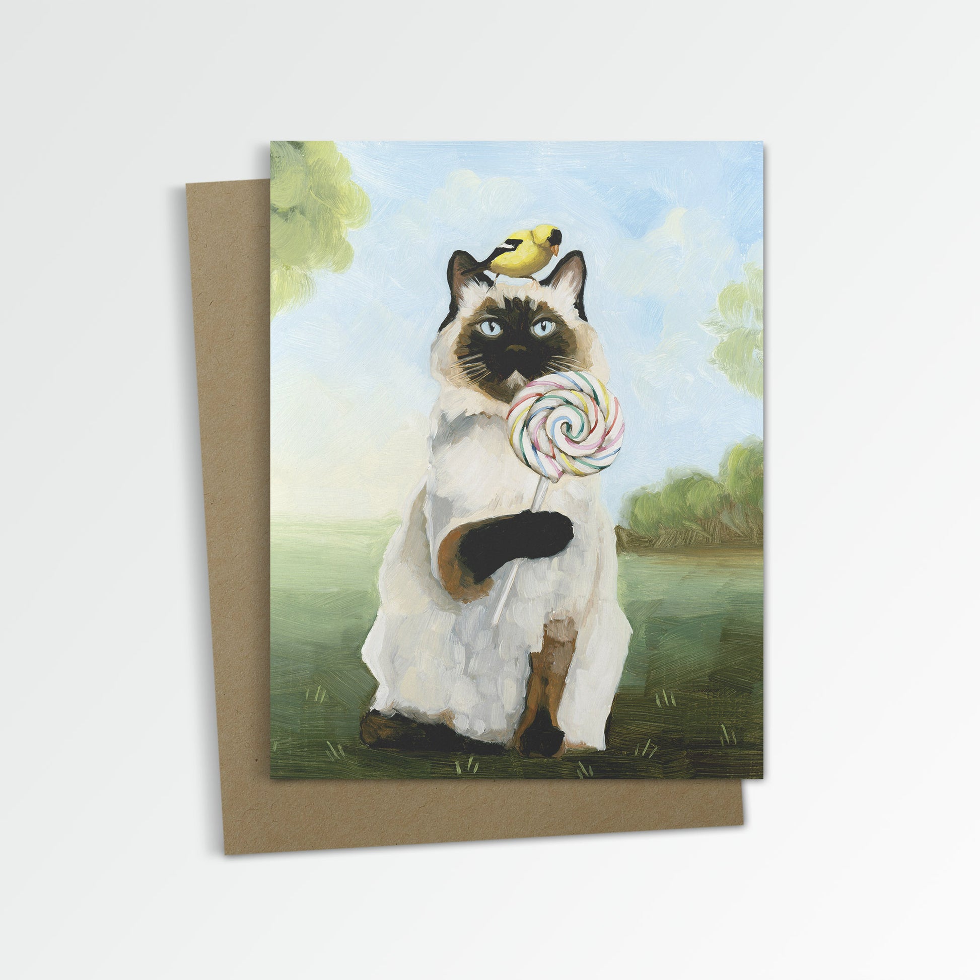 Siamese Cat w/ Lollipop Notecard (Blank Inside)