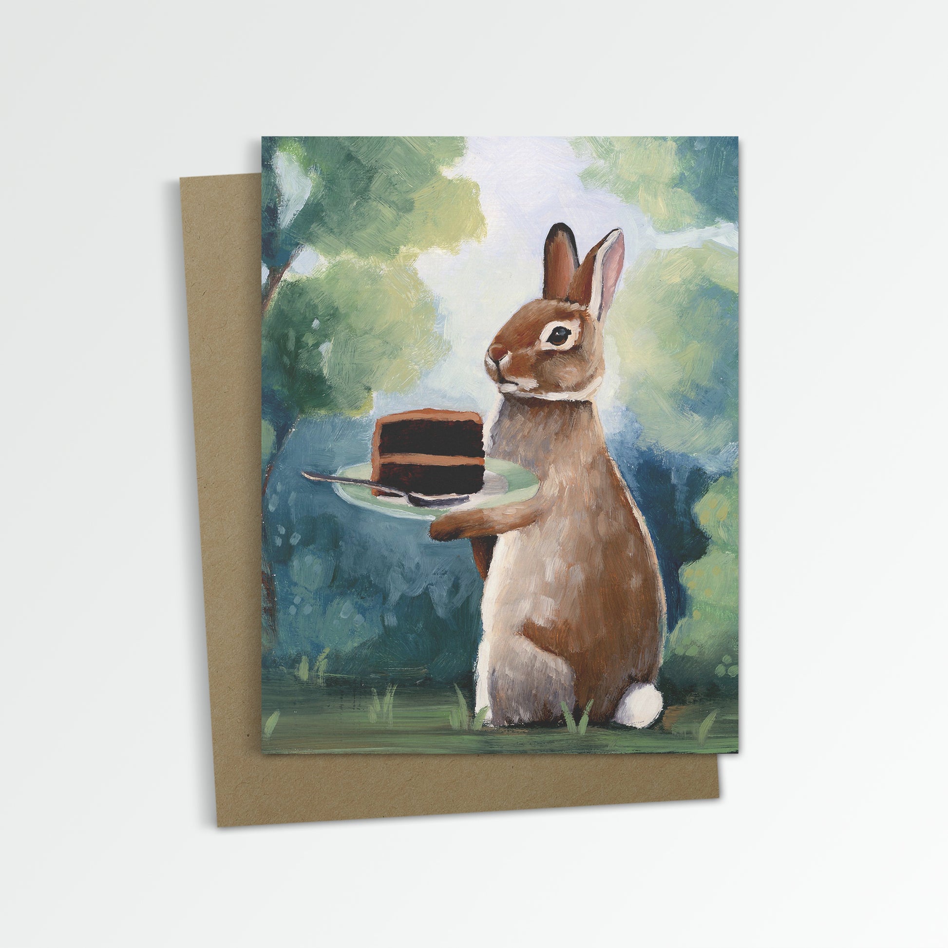 Rabbit w/ Chocolate Cake Notecard (Blank Inside)