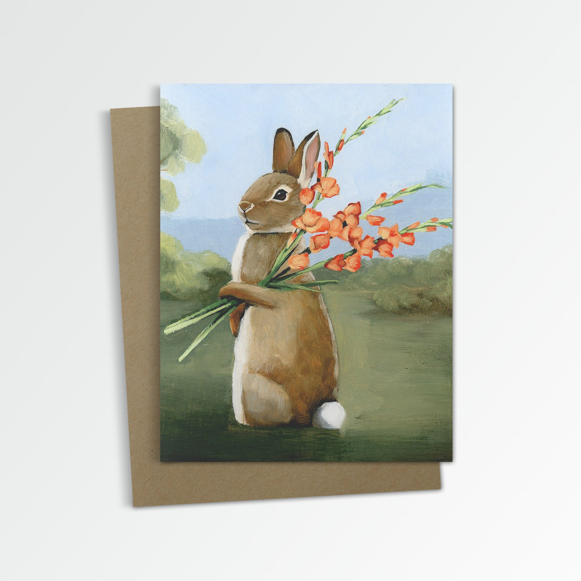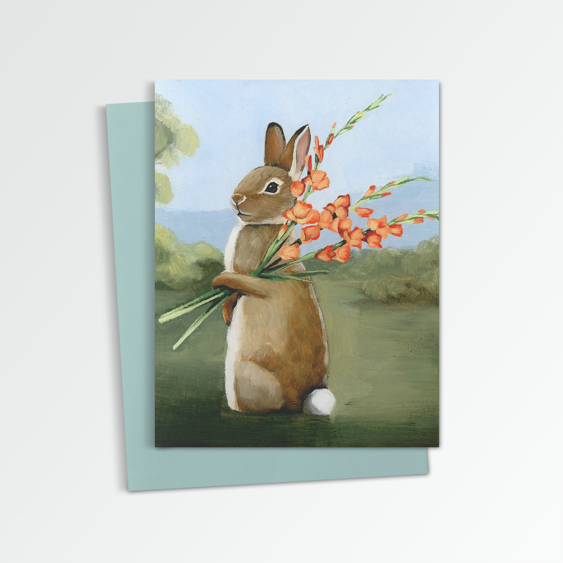 Rabbit w/ Gladiolus Notecard (Blank Inside)