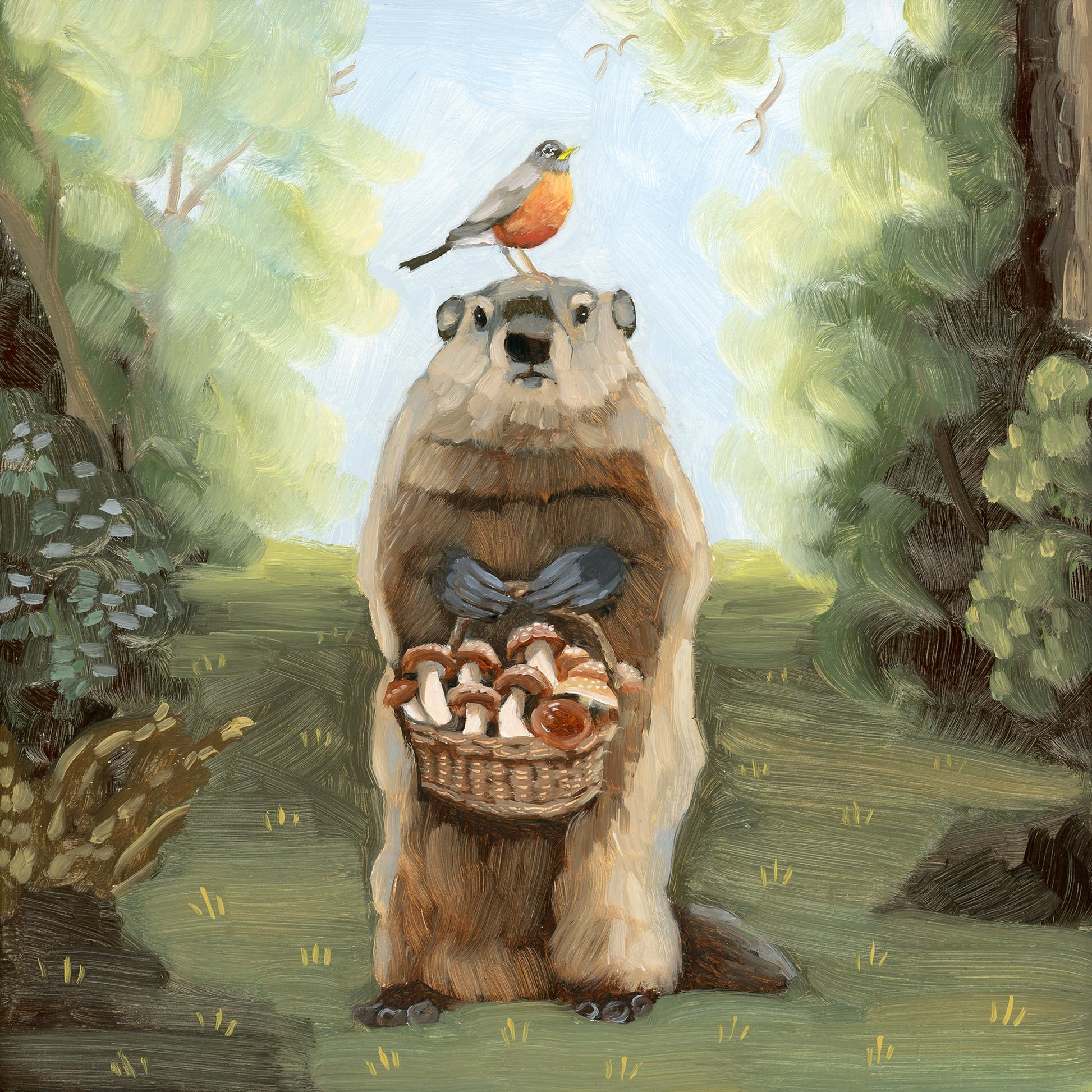 Groundhog w/ Mushrooms - 8x8 original oil painting