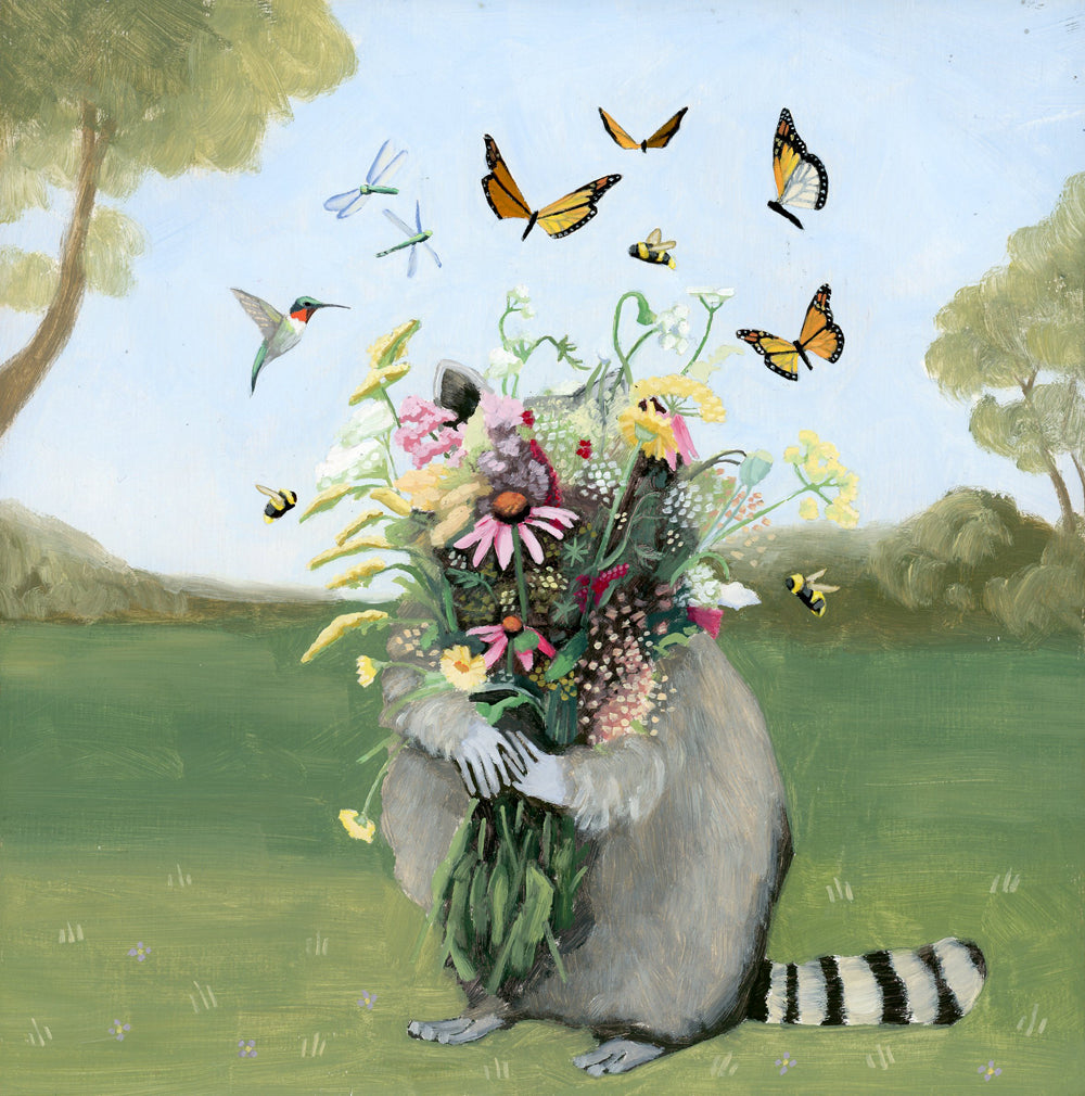 Raccoon w/ Wildflowers - 10x10 Art Print