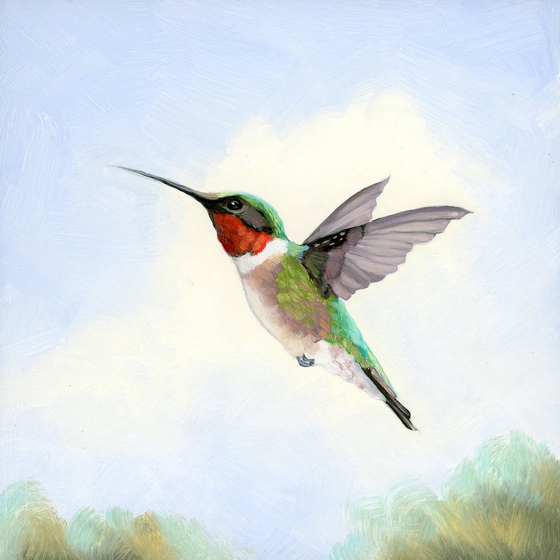 Ruby-throated Hummingbird - 6x6 original oil painting