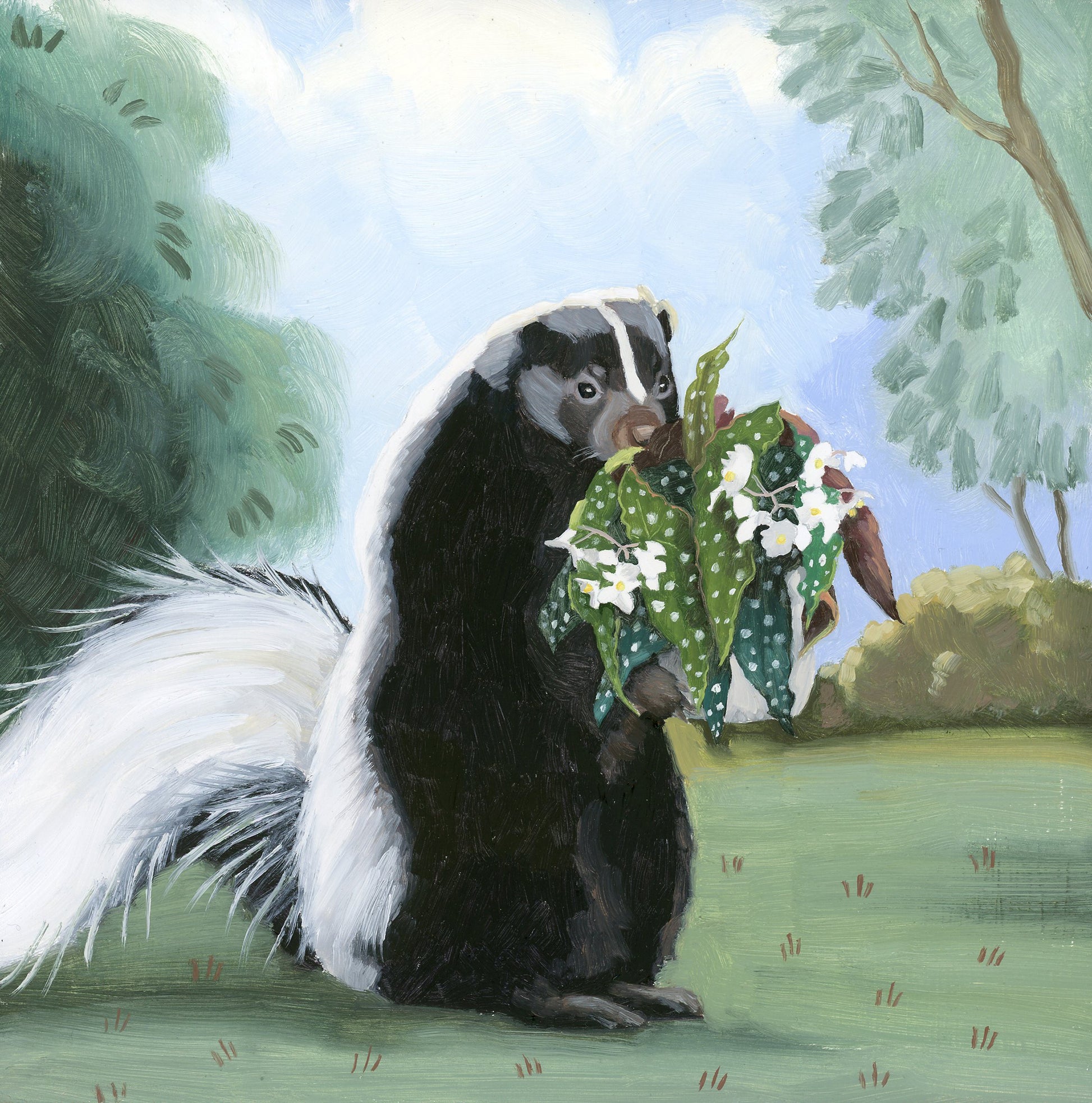 Skunk w/ Begonia - 8x8 Original Oil Painting