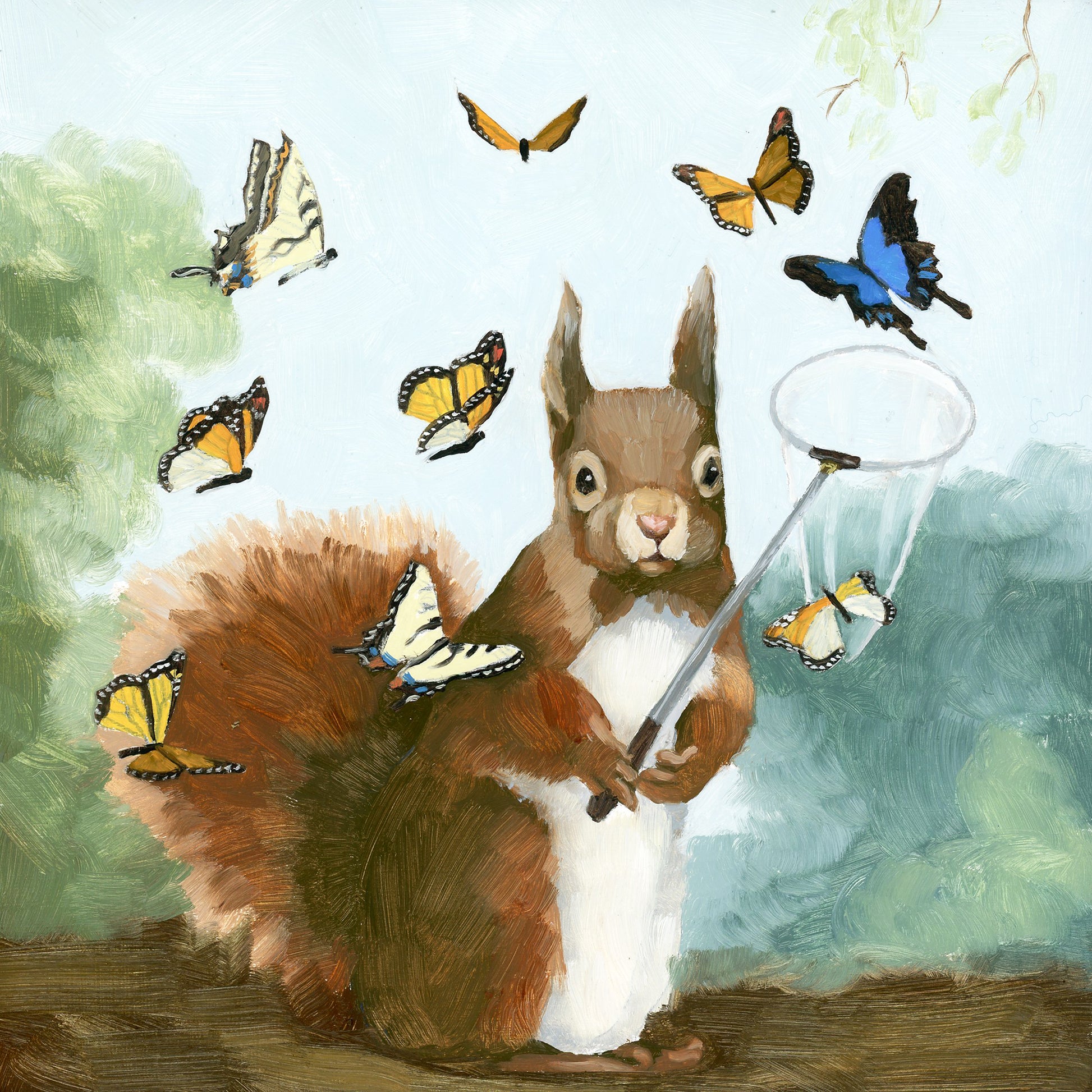 Squirrel w/ Butterflies - 8x8 original oil painting