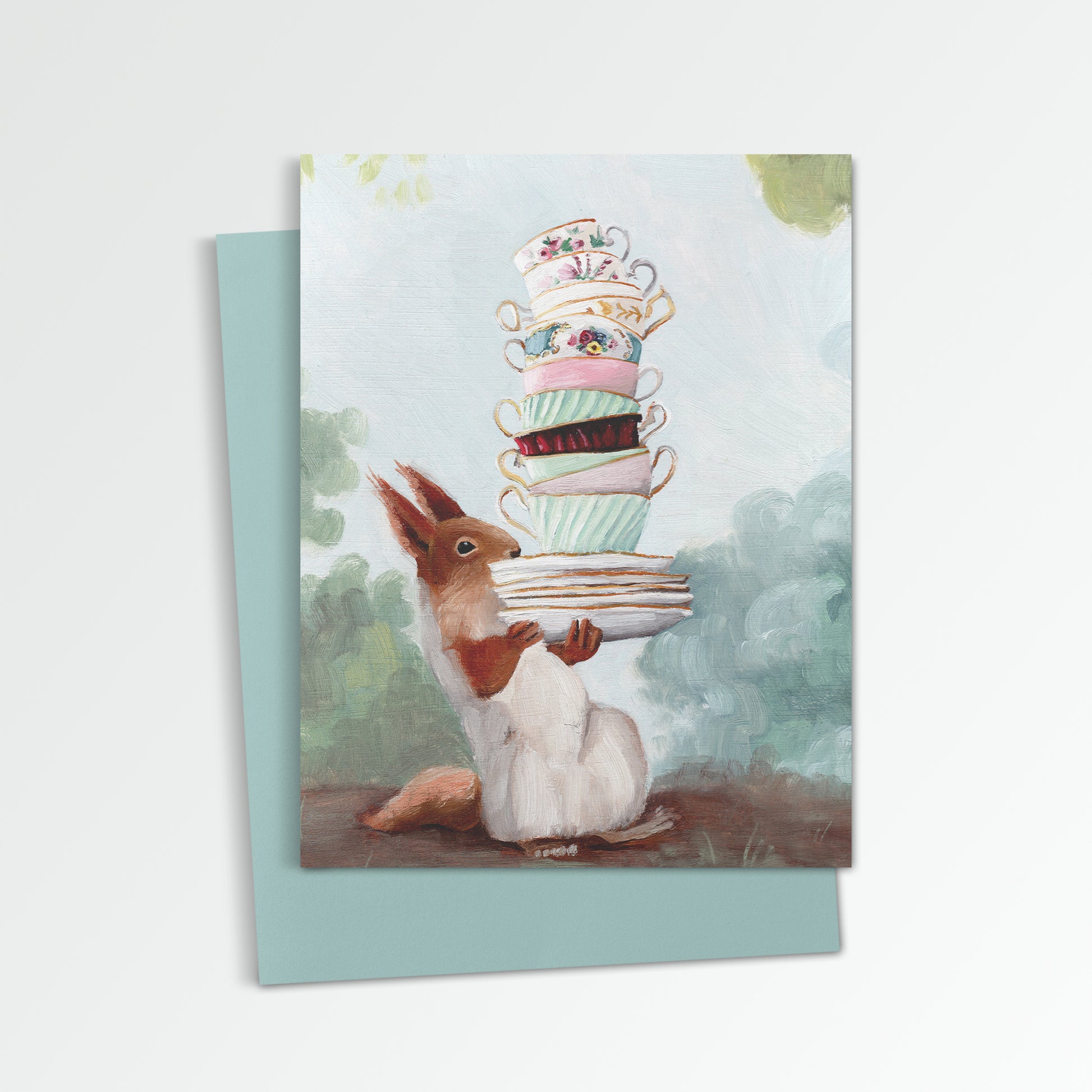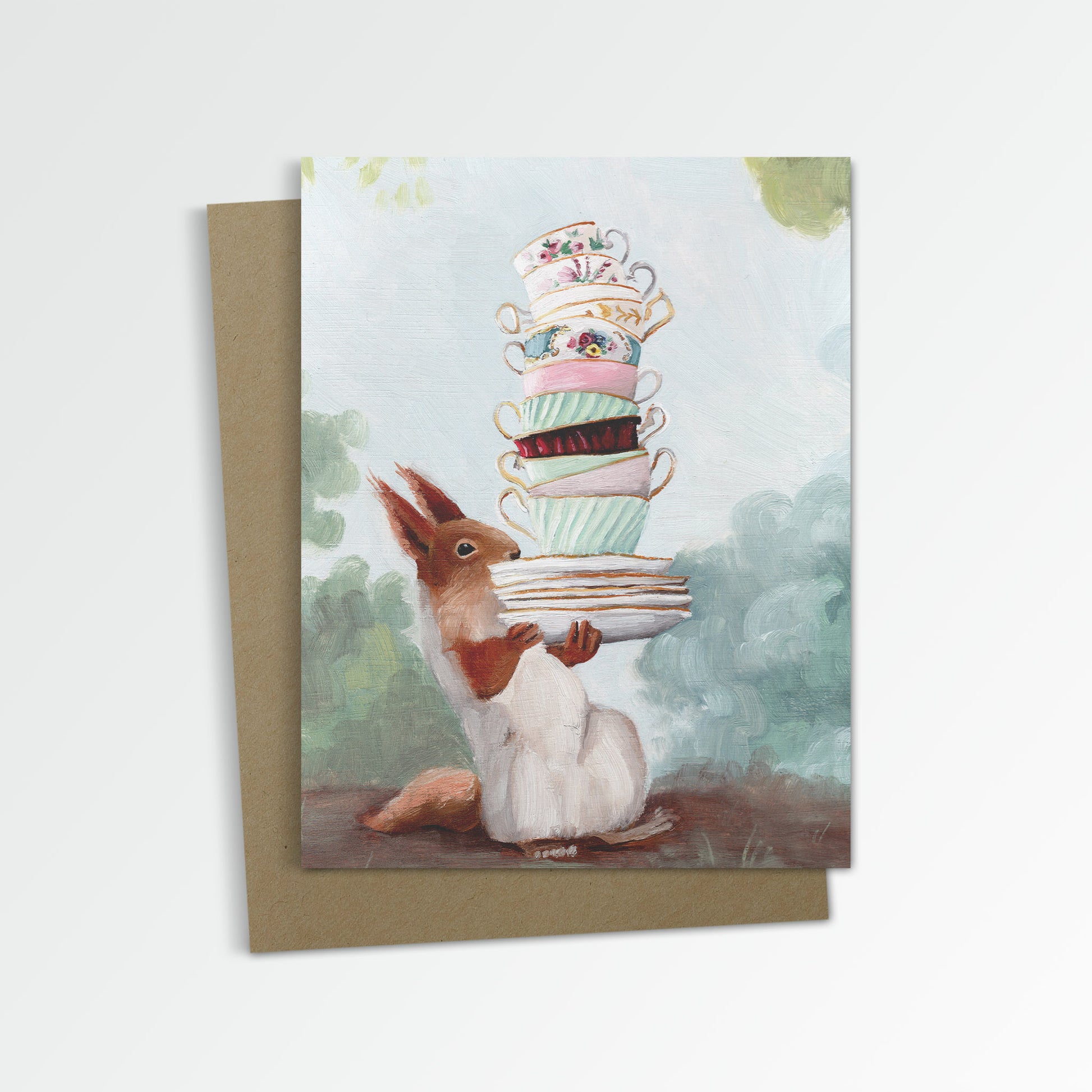 Squirrel w/ Teacups Notecard (Blank Inside)