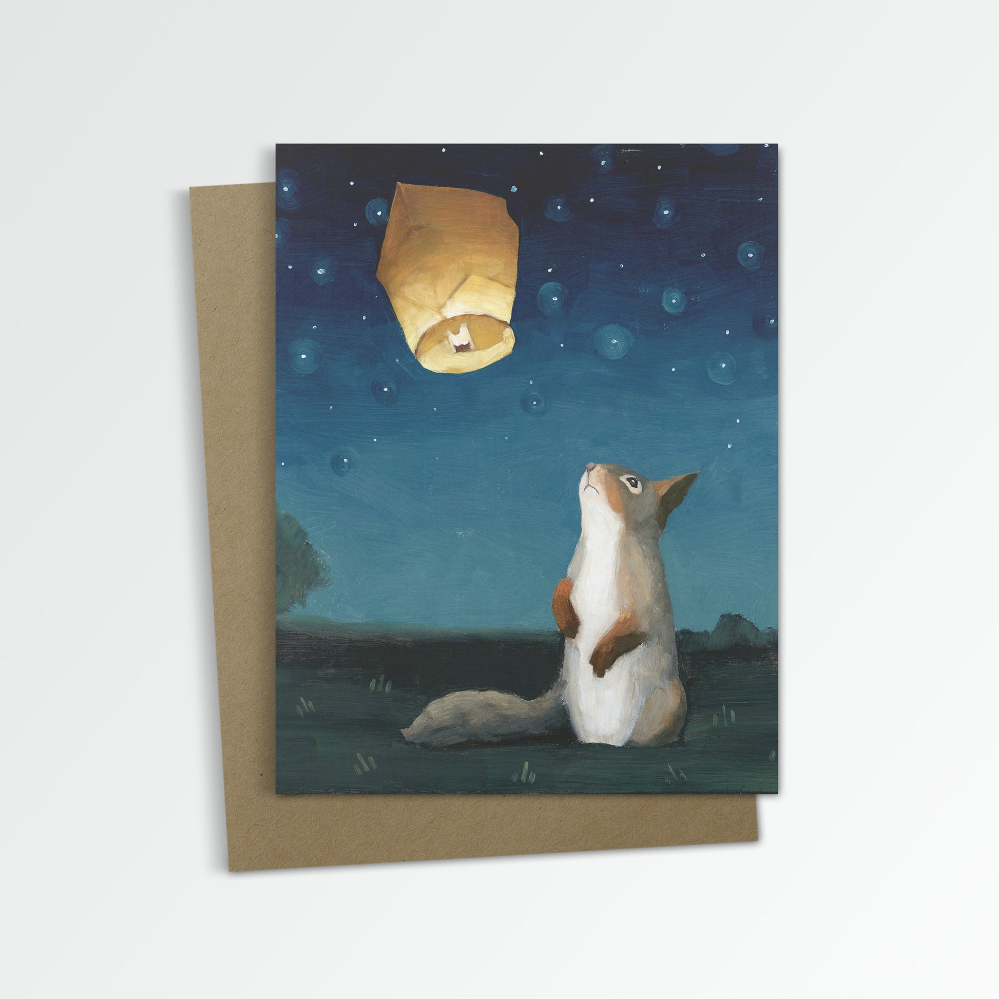 Squirrel w/ Wish Lantern Notecard (Blank Inside)